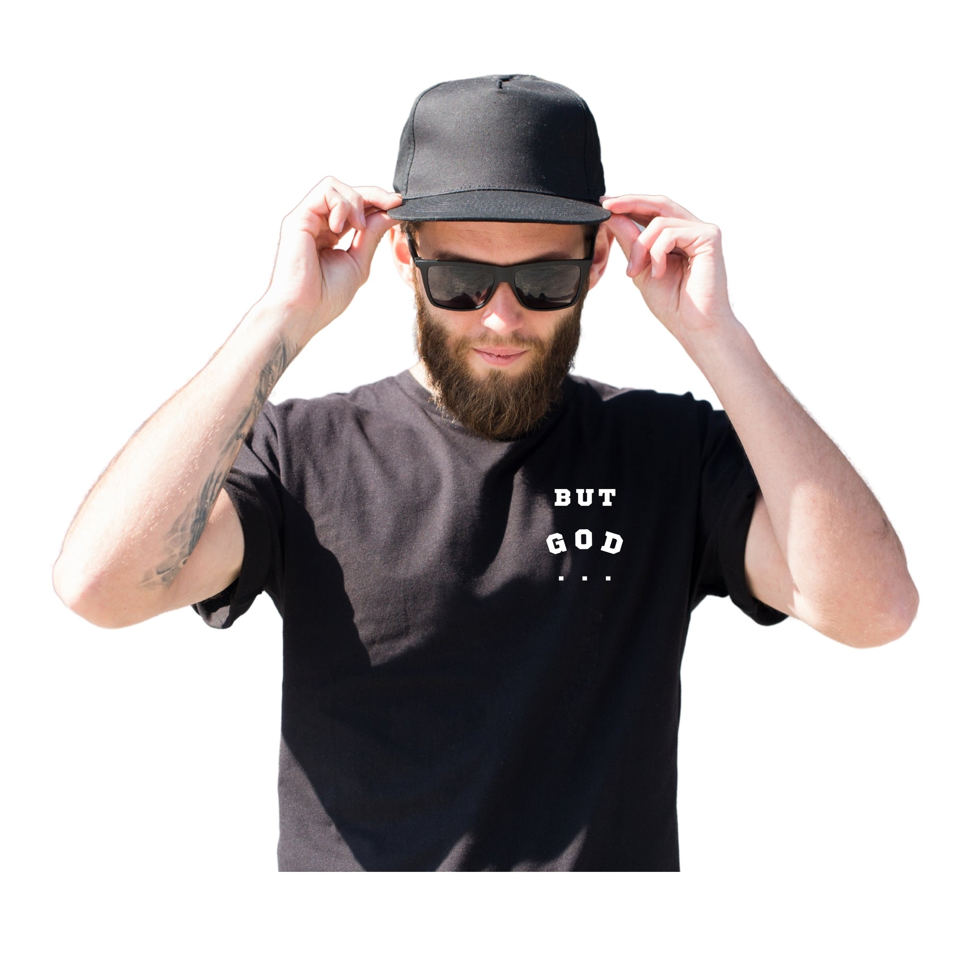 Subtle yet powerful, the “BUT GOD…” design sits right over the heart to mark the place where your story changed forever. This shirt isn’t just a vibe — it’s a praise report in motion.