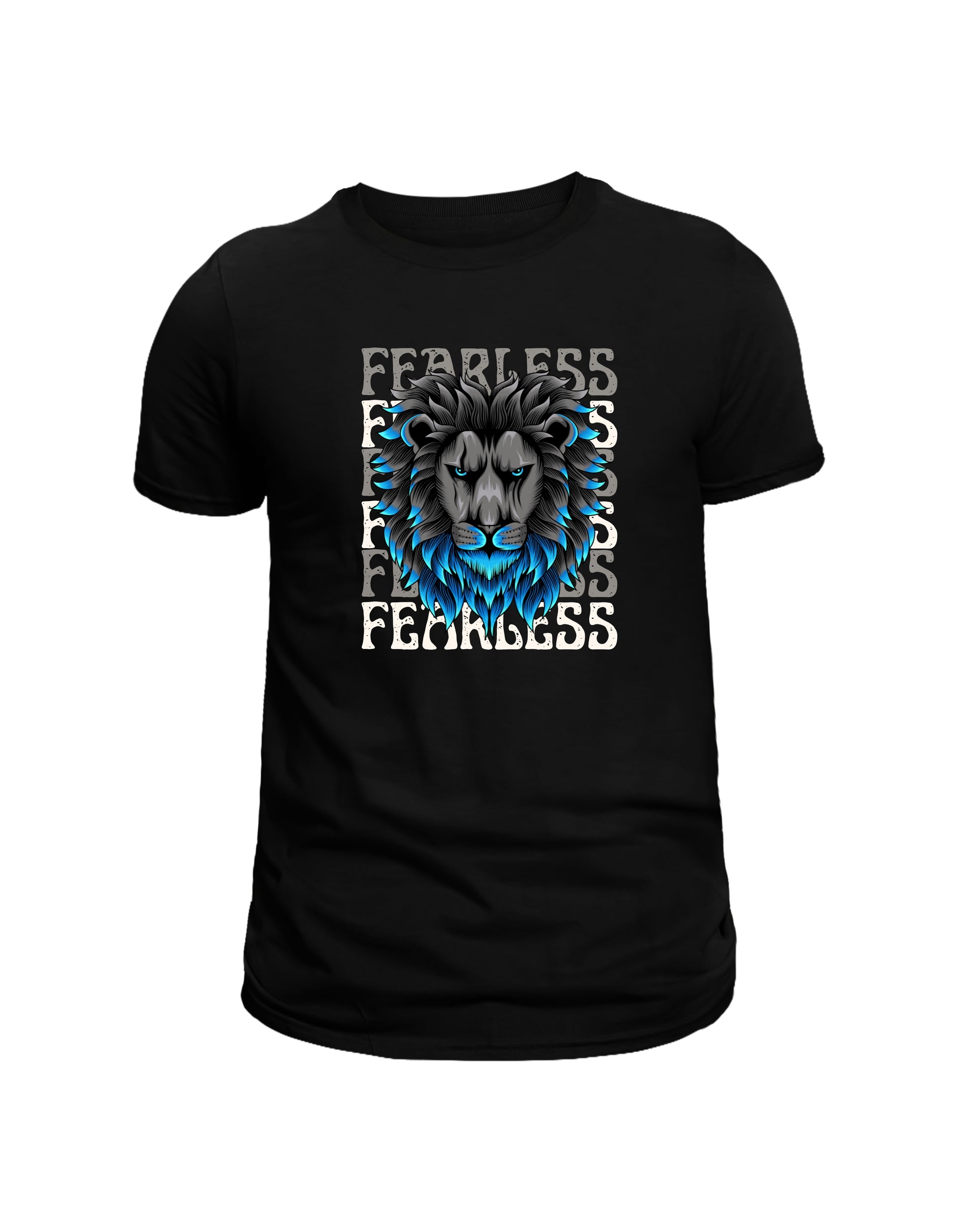 The Fearless tee features a bold lion — symbolic of the Lion of Judah — standing front and center over the word FEARLESS, reminding you that fear is not your portion.