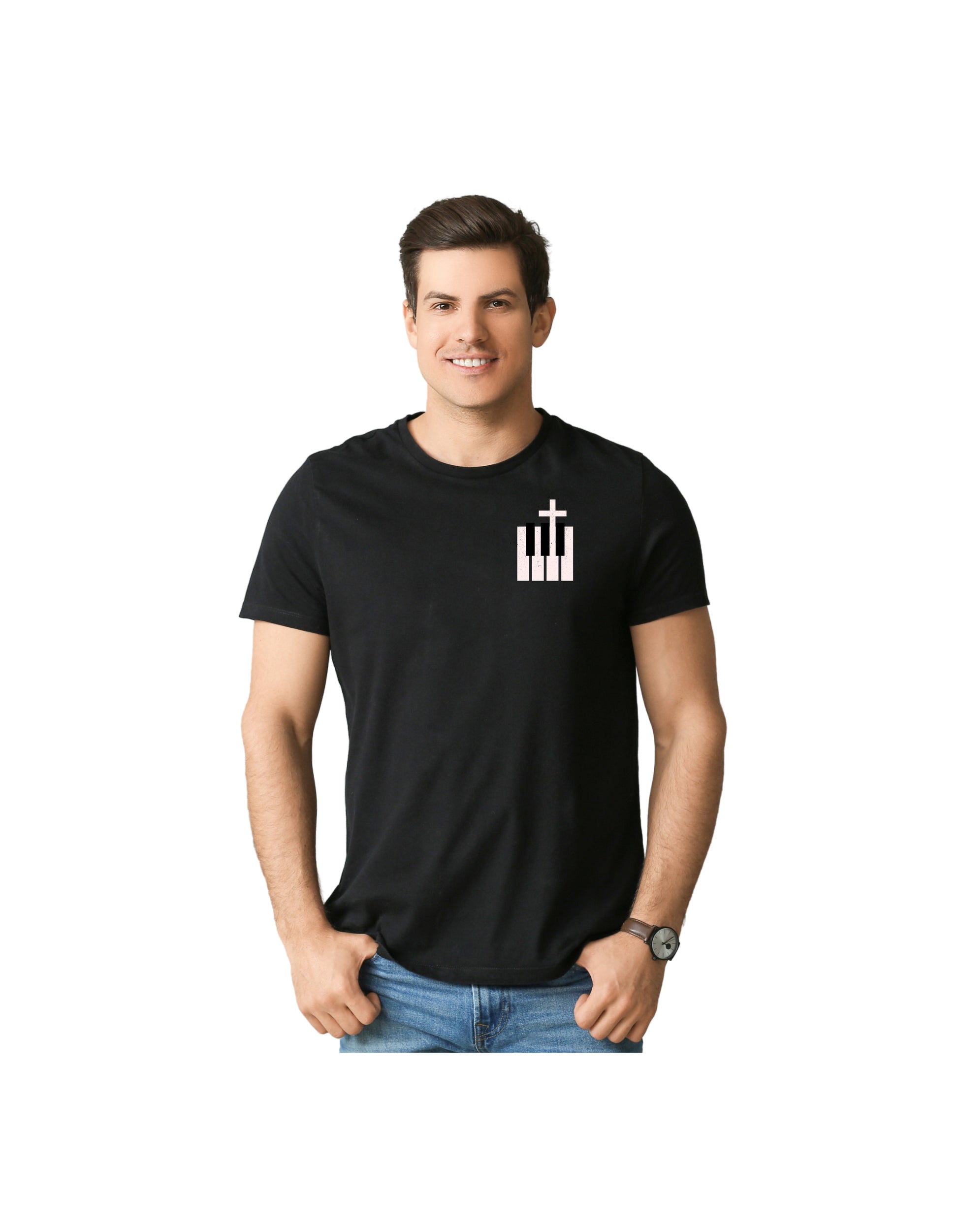 The Keys to the Kingdom tee is designed for worshippers, musicians, and warriors behind the keys. Featuring a stylized keyboard where one white key is transformed into a cross, this design speaks straight to the heart of those who know their instrument is a weapon of worship.